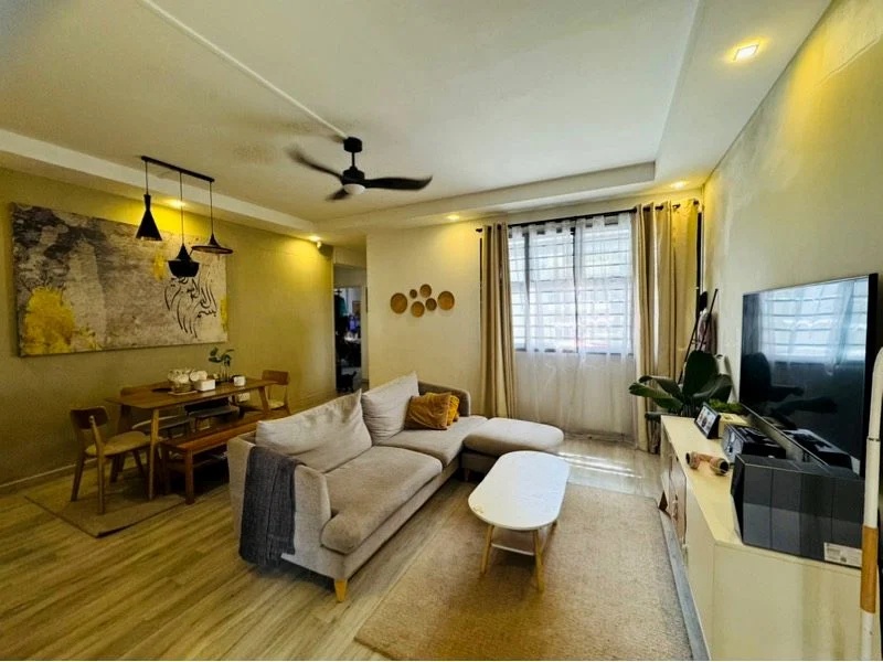 This well-maintained 3-bedroom unit boasts a thoughtful layout, featuring a spacious living room with a large TV console and stylish wall decals. The modern kitchen is equipped with L-shaped two-tone cabinetry and an integrated cooker hood, perfect for culinary enthusiasts. The bedrooms are designed for comfort, with built-in wardrobes and a platform bed, ensuring ample storage and a cozy retreat.