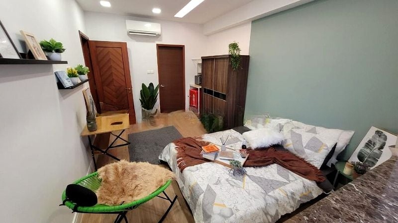 Step into a sanctuary of light and elegance at EASTPOINT GREEN, where abundant natural light floods the spacious living area through floor-to-ceiling windows. The bright and airy ambiance, complemented by herringbone parquet flooring and designer accent furniture, creates a welcoming atmosphere that invites relaxation and enjoyment. Enjoy stunning views of lush greenery and the city skyline, making every moment spent here a visual delight.