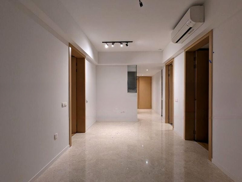 Step into a sanctuary of modern elegance as you enter this brand-new 2-bedroom unit at The Tre Ver. The polished stone flooring gleams under the track lighting, creating a warm and inviting ambiance. Sliding glass doors lead to a private balcony, inviting natural light and offering serene views that enhance the living experience.