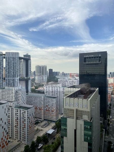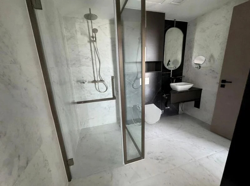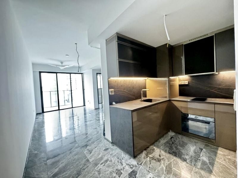 Step into a world of contemporary elegance as you enter this brand-new 2-bedroom unit at ONE BERNAM. The abundant natural light floods through the floor-to-ceiling windows, illuminating the sleek grey marble-look floor tiles that create a seamless flow throughout the open-concept living and dining area. Enjoy panoramic views of the city skyline and the sea from your private balcony, enhancing the modern minimalist ambiance of your new home.