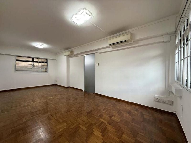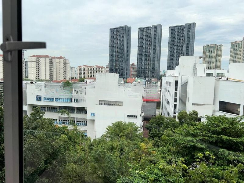 Step into this spacious HDB flat and feel the simplicity and functionality that greets you. The large windows in the living room invite moderate natural light, enhancing the open layout and highlighting the ceiling cornices. Tiled flooring throughout adds a touch of practicality, while the views of surrounding residential buildings create a cozy urban ambiance.