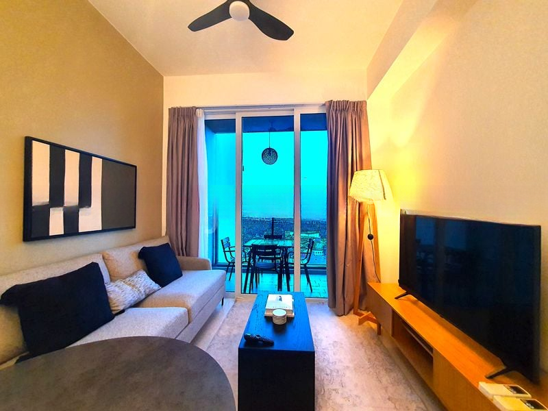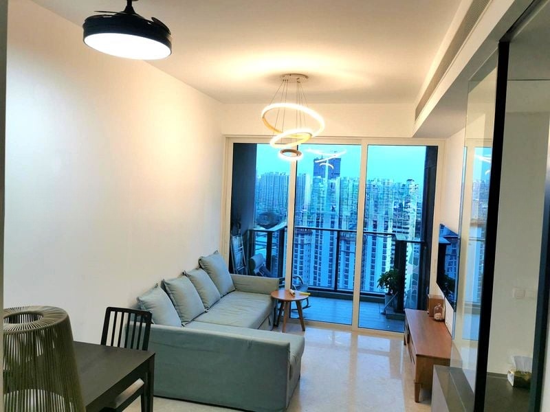 Step into this brand-new, modern minimalist unit at Principal Garden, where abundant natural light floods through floor-to-ceiling windows, illuminating the polished stone flooring and creating an inviting ambiance. The stunning urban views from the balcony provide a perfect backdrop for relaxation, while the marble-look finishes add a touch of elegance to your living space.