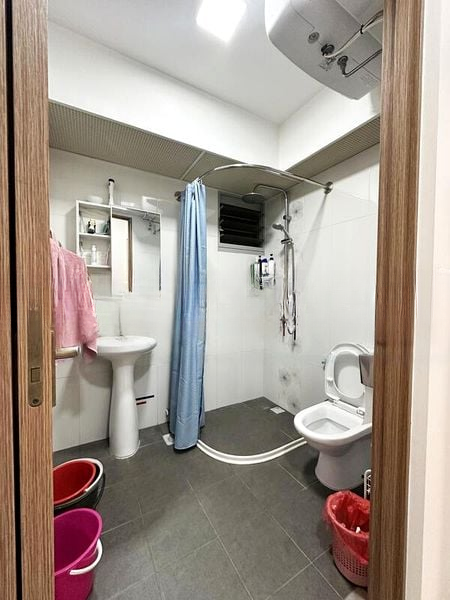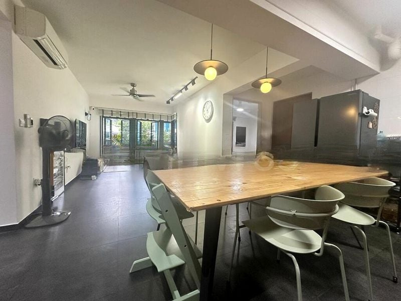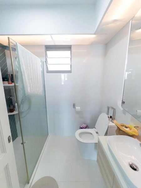 Step into this beautifully renovated 3-bedroom HDB flat and feel the modern minimalist ambiance envelop you. The well-maintained interiors are accentuated by moderate natural light filtering through full-length curtains, highlighting the elegant finishes and spacious layout. The living area features an L-shaped leather sofa and a striking 3-piece landscape wall art, creating a welcoming atmosphere that invites relaxation.