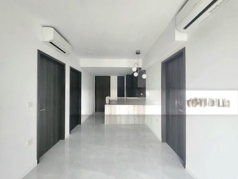 Step into this brand-new 2-bedroom unit at Riverfront Residences, where abundant natural light floods the space, creating a bright and airy ambiance. The polished floor tiles and modern pendant lighting enhance the contemporary feel, while the balcony offers stunning views of the pool and urban landscape, inviting you to relax and unwind.