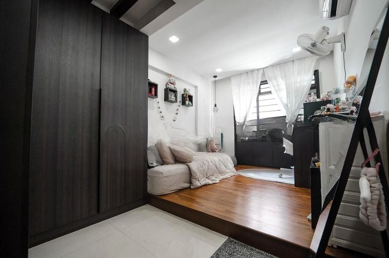 Step into this beautifully renovated 2-bedroom flat, where modern minimalist design meets functionality. The wood-look laminate flooring and patterned wallpaper create a warm yet contemporary ambiance, while the full-height built-in sliding wardrobes offer ample storage. Enjoy the natural light streaming through large windows, framing an unblocked view of lush greenery and the main road.
