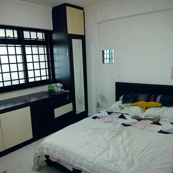 Step into this well-maintained HDB flat and feel the warmth of a lived-in space. The moderate natural light filters through the windows, highlighting the functional design and inviting ambiance. The urban views from the unit create a vibrant backdrop to your daily life, while the floor-to-ceiling mirrored wardrobe adds a touch of elegance and depth to the bedroom.
