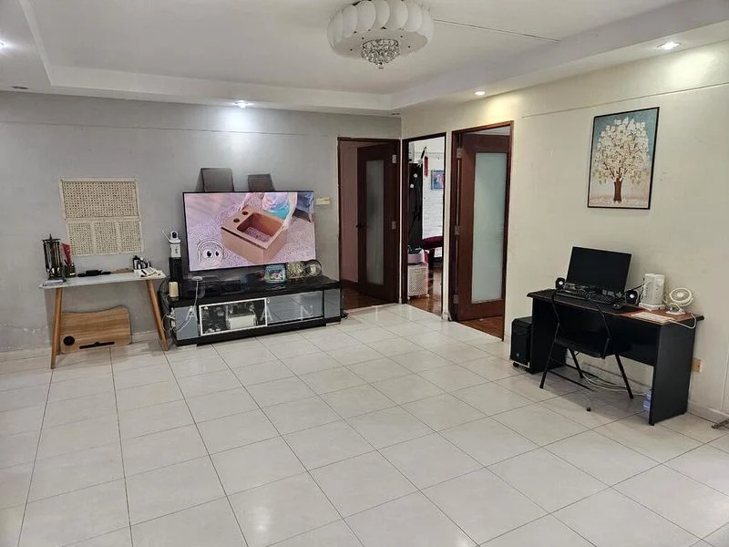 Step into this beautifully renovated HDB flat at Wellington Circle, where a warm ambiance envelops you. The cozy living space is adorned with a stunning wood-paneled TV feature wall and a built-in aquarium partition, creating an inviting atmosphere. Natural light filters through, accentuating the large format floor tiles and cove lighting that enhance the overall charm of the unit.