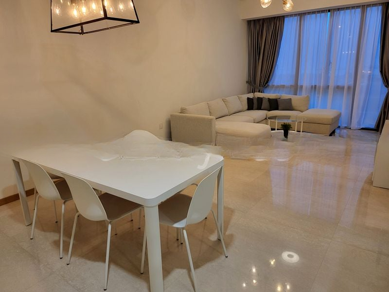 Step into a world of modern elegance as you enter this beautifully renovated unit at Marina One Residences. Bathed in abundant natural light, the open layout features floor-to-ceiling windows that frame breathtaking views of the city skyline. The marble flooring adds a touch of sophistication, while the minimalist ambiance invites you to unwind in style.