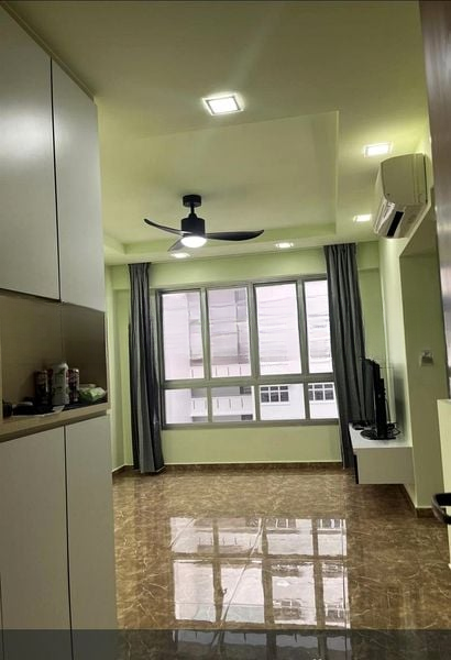 Step into a world of modern elegance as you enter this beautifully renovated HDB flat at Sumang Walk. Bathed in abundant natural light, the open-concept living area features light wood-look flooring and a striking dark grey accent wall, complemented by cove lighting that enhances the serene ambiance. Large windows frame unblocked views of the water and lush greenery, creating a picturesque backdrop for your daily life.