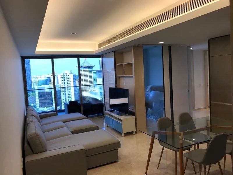 Step into this brand-new designer unit at Cairnhill Nine and be captivated by the breathtaking city skyline views that greet you from the open-concept living area. The modern minimalist ambiance is enhanced by cove lighting and elegant marble-look floor tiles, creating a serene yet stylish atmosphere that invites relaxation.
