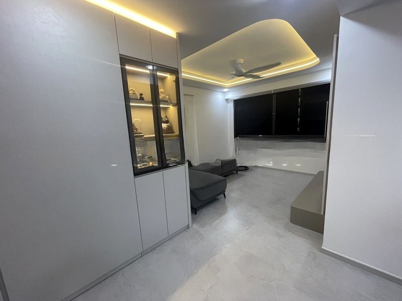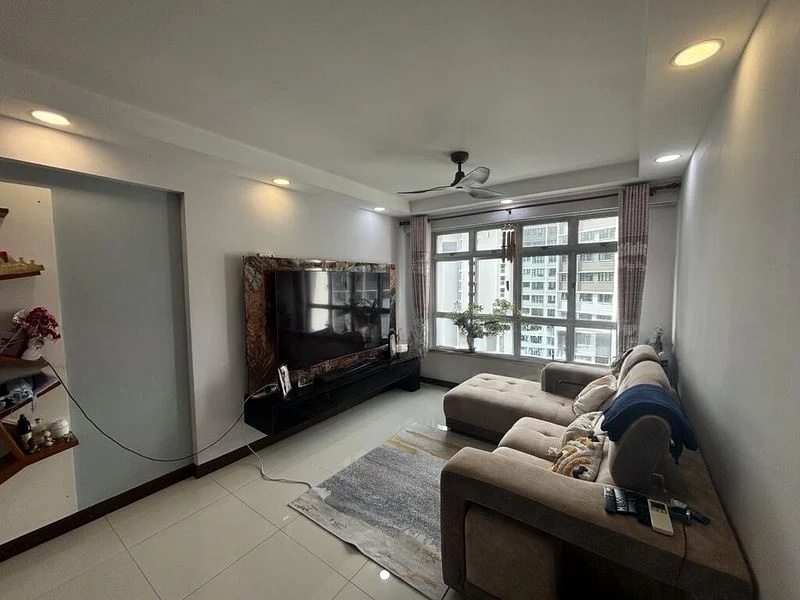 Step into this beautifully renovated HDB unit at 440B Fernvale Link, where abundant natural light floods through large windows, illuminating the modern minimalist finishes throughout. The open-concept living room invites you to relax, featuring wood-look vinyl flooring and a built-in window seat that offers a cozy spot to enjoy the views of the surrounding residential blocks.