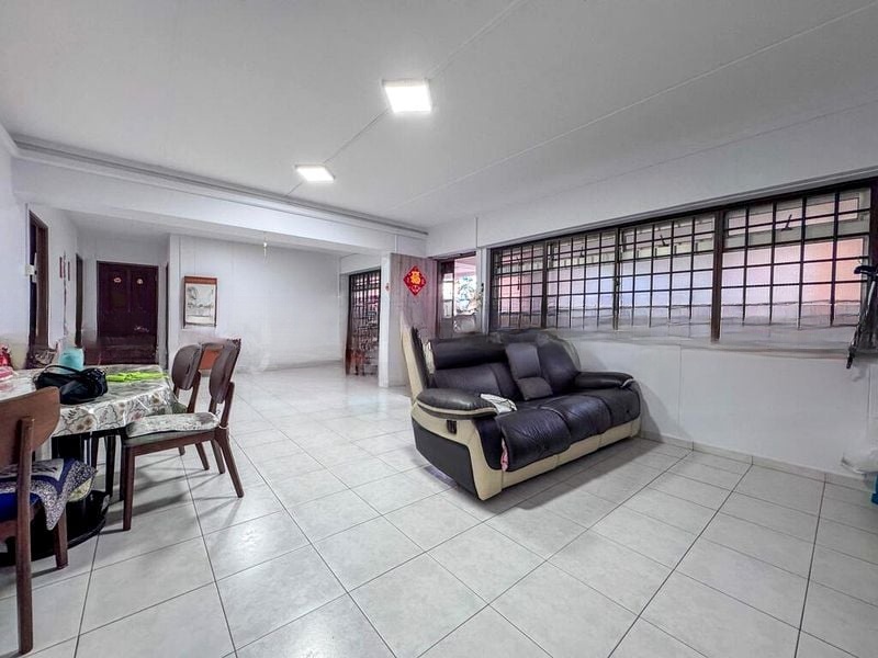Step into this well-maintained 3-bedroom flat and feel the bright ambiance envelop you. The spacious living area, adorned with white tiled flooring and large windows, invites ample natural light, creating a warm and functional atmosphere. Enjoy urban views of the neighboring HDB blocks, adding a sense of community to your living space.