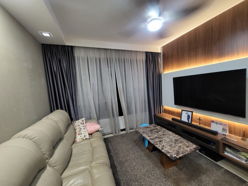 Step into a world of modern elegance with this beautifully renovated HDB flat at 651 Yishun Ave 4. The open-concept living area greets you with a soothing ambiance, featuring marble-patterned feature walls and an inviting indoor plant corner. Natural light filters through the space, enhancing the light wood-look flooring and creating a warm, welcoming atmosphere.