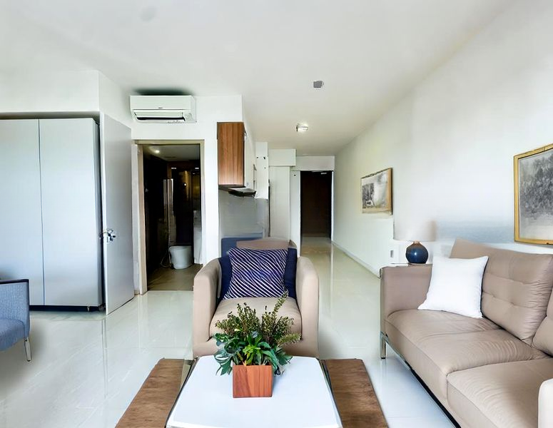 Step into a serene sanctuary where modern minimalist design meets functionality. The well-maintained studio at Treasure at Tampines greets you with natural light filtering through large windows, illuminating the elegant finishes and stylish furnishings. The ambiance is inviting, featuring a stunning rattan headboard and a designer ceiling fan that enhances the contemporary feel.