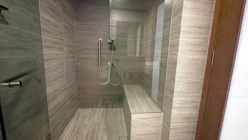 Step into a modern minimalist haven where sophistication meets comfort. The open-concept living area greets you with a stunning mirrored wall that reflects natural light, creating an inviting ambiance. Enjoy urban city views from your balcony, while the dark wood slatted feature wall adds a touch of elegance to the space.
