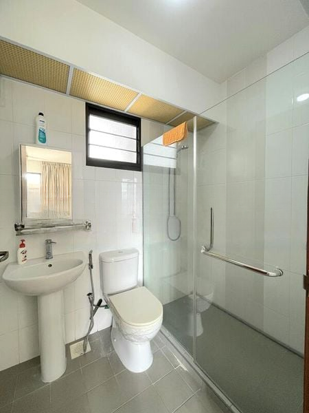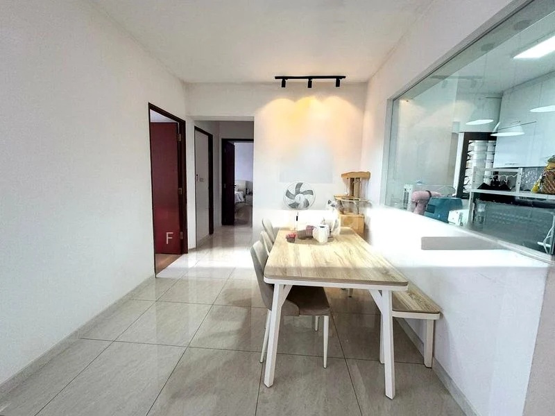 Step into this beautifully renovated HDB flat at Ghim Moh Link, where modern elegance meets functional living. The ambiance is instantly inviting, with cove lighting illuminating the spacious living area, complemented by an L-shaped sofa and integrated storage that creates a seamless flow. Large windows drape the rooms in natural light, offering urban views of the neighboring residential blocks.