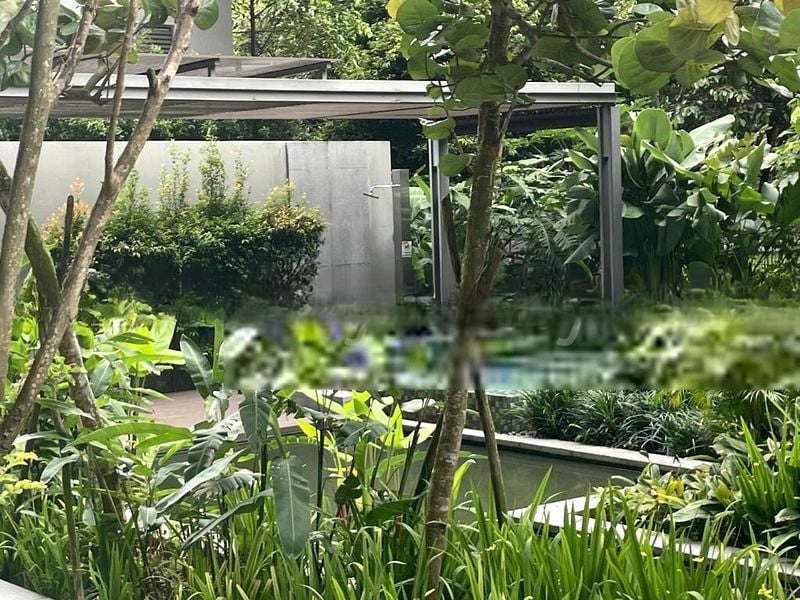 Step into a sanctuary of light and space, where abundant natural light floods through floor-to-ceiling windows, creating a bright and airy ambiance. The modern finishes, including sleek stone wall tiles and a marble bathroom vanity, invite you to experience luxury living at its finest. Enjoy picturesque views of the pool and lush greenery, complemented by glimpses of the vibrant cityscape beyond.