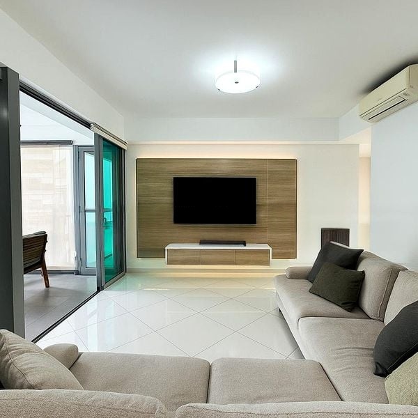 Step into a world of modern elegance as you enter this beautifully renovated unit at Eight Courtyards. The abundant natural light floods through the floor-to-ceiling windows, illuminating the spacious living area adorned with large format floor tiles and a stunning built-in wood-textured TV feature wall. Enjoy the seamless transition to your private balcony, where you can unwind amidst views of lush greenery and urban landscapes.