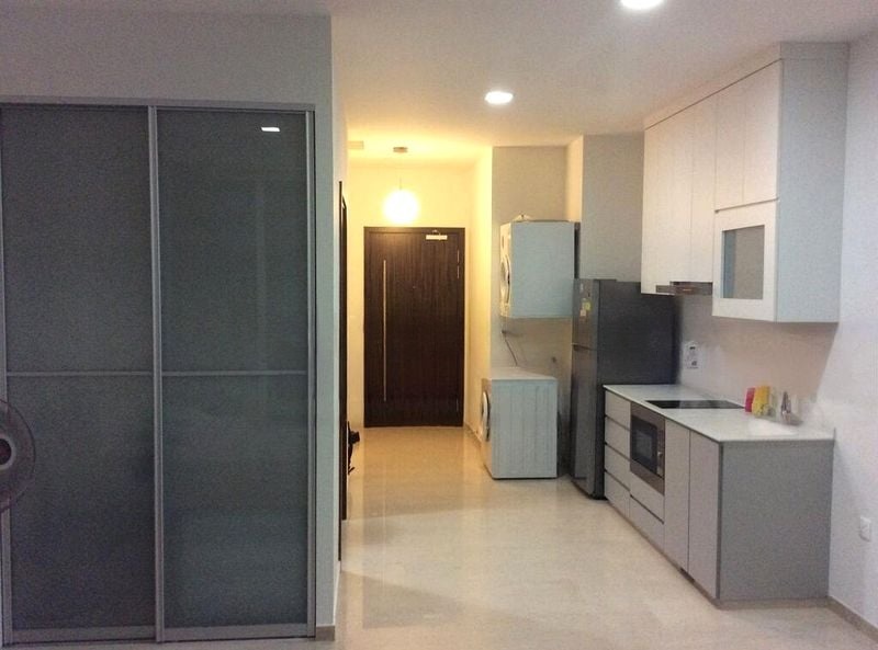 Step into this beautifully maintained studio at Parc Elegance, where abundant natural light floods the open-concept layout, highlighting the sleek tile flooring and crisp white walls. The modern minimalist ambiance is enhanced by the sliding glass door that leads to your private balcony, offering a serene outdoor seating space with urban views of the vibrant Telok Kurau district.