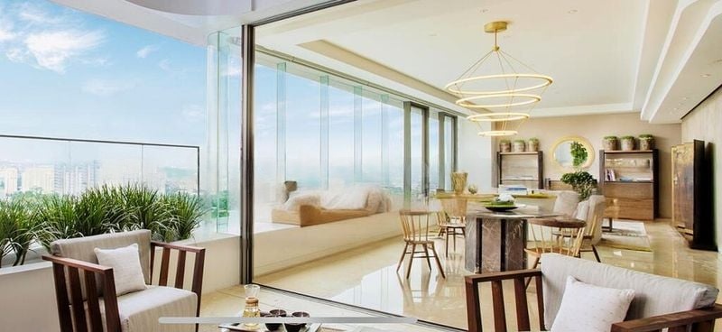 Step into a world of luxury and sophistication at Ardmore Residence, where abundant natural light floods the open-concept living space through floor-to-ceiling glass walls. The bright and airy ambiance is complemented by stunning views of the city skyline and lush greenery, creating a serene escape in the heart of Singapore. A standout feature is the Yayoi Kusama-style pumpkin sculpture that adds a unique artistic touch to the surroundings.