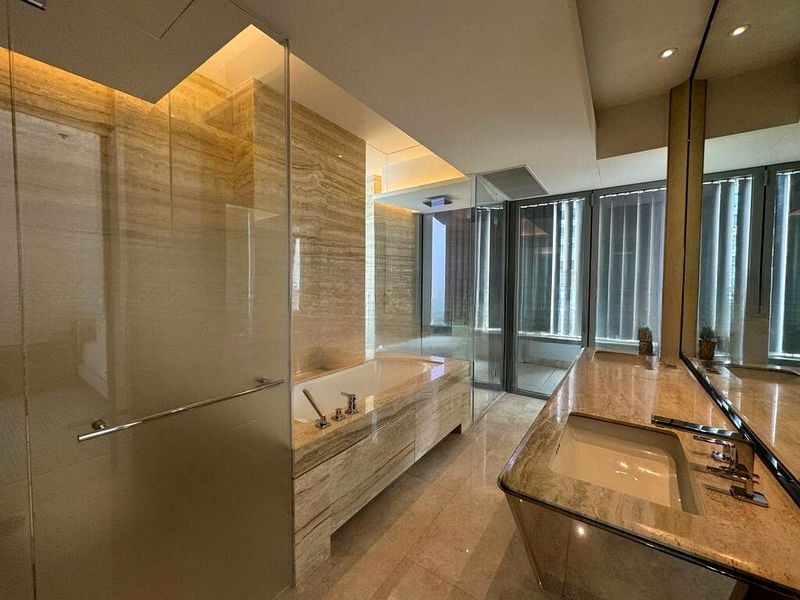 This well-maintained 3-bedroom unit boasts an impressive layout of 3,186 sqft, featuring light wood flooring throughout and modern minimalist furniture. The spacious living area seamlessly transitions to the outdoor space, perfect for entertaining. Each bedroom is designed for comfort, with large windows offering urban views and an en-suite bathroom adorned with marble-look tiles. Residents can enjoy the infinity pool, designer poolside cabanas, and a contemporary playground, all set within manicured tropical landscaping.