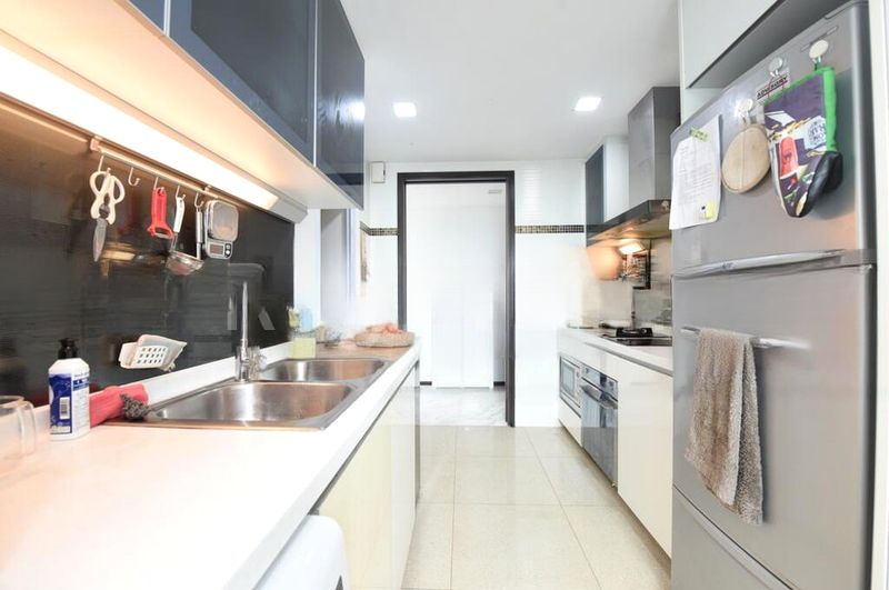 Step into a world of elegance as you enter this beautifully renovated unit at The Vision. Bathed in abundant natural light, the bright and airy ambiance is enhanced by stunning views of the city skyline and lush greenery. The marble-look floor tiles and crystal chandelier lighting create a sophisticated atmosphere that invites you to unwind and enjoy your surroundings.