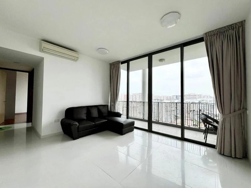 Step into a sanctuary of light and space, where floor-to-ceiling windows invite abundant natural light to dance across the airy interiors. The bright ambiance is complemented by a large balcony that offers serene views of lush greenery and the inviting pool, creating a perfect backdrop for relaxation.