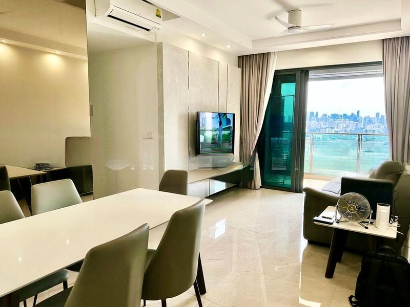 Highlights: - Brand-new designer finishes - Panoramic city skyline views - Efficient 3-bedroom compact layout - Abundant natural light - Prime location near MRT and schools