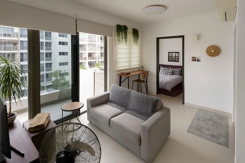 Step into a bright and airy sanctuary at The Inflora, where abundant natural light floods through floor-to-ceiling windows, illuminating the modern minimalist furnishings. The expansive balcony invites you to unwind while enjoying serene views of the lush greenery and sparkling lap pool, creating a tranquil retreat right at home.