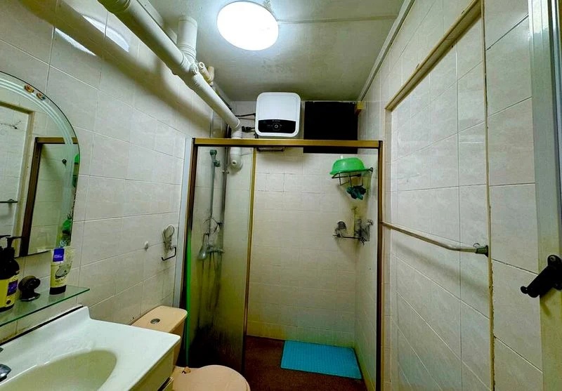 This 3-bedroom unit boasts a spacious layout, featuring wood parquet flooring in the bedrooms and built-in sliding wardrobes that maximize storage. The kitchen, with its galley layout, showcases a stylish mosaic tile backsplash and dark brown lower cabinets, perfect for culinary enthusiasts. The bathrooms are thoughtfully designed with a glass shower enclosure and modern finishes, ensuring comfort and convenience.
