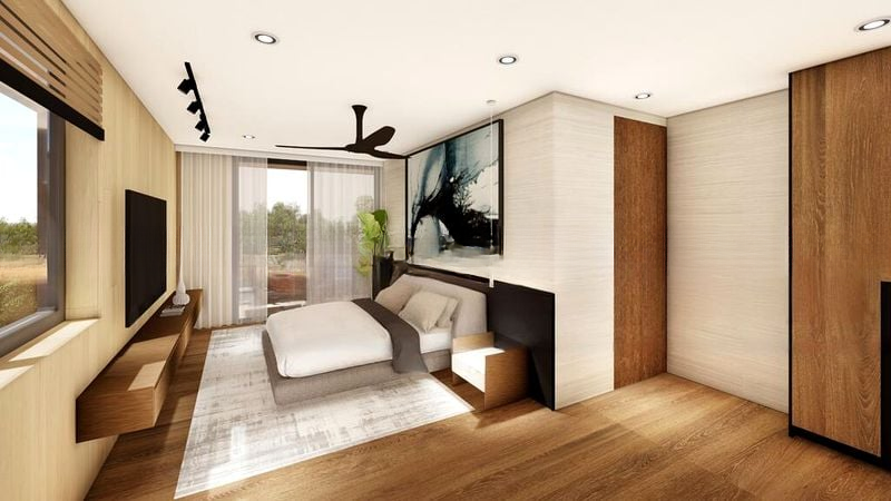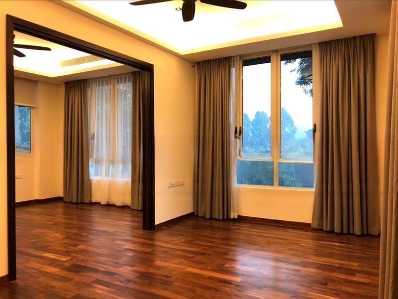 Step into a world of modern elegance as you enter this exquisite unit at Binjai Park. Bathed in abundant natural light, the spacious living room features high ceilings, wood flooring, and cove lighting, creating an inviting ambiance that seamlessly connects with the lush garden views outside. The minimalist design enhances the sense of space, making it a perfect retreat for relaxation.