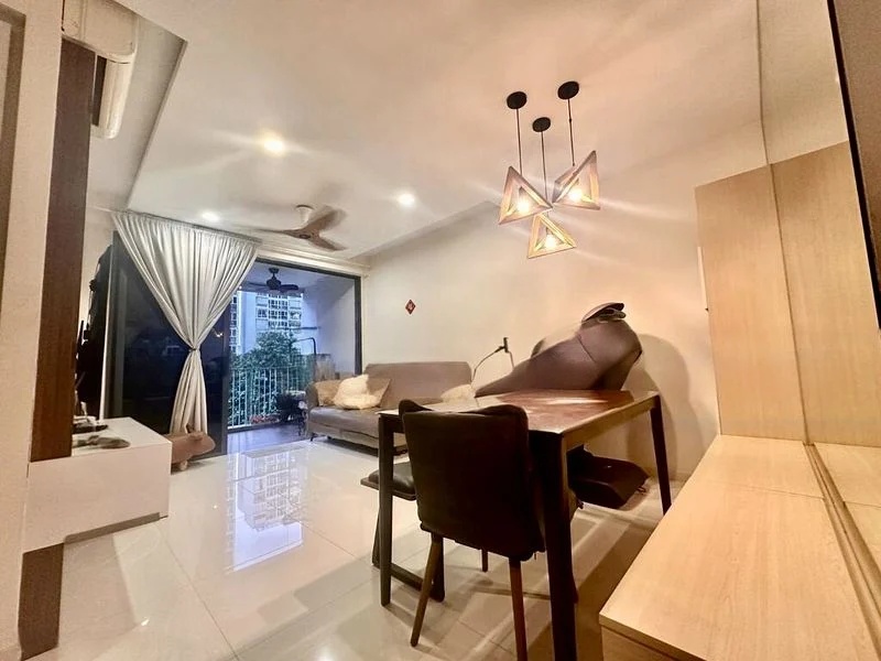 Step into this beautifully renovated 3-bedroom unit at Twin Waterfalls and be greeted by an abundance of natural light that accentuates the modern minimalist design. The glossy floor tiles and wood-grain feature wall create a warm yet sophisticated ambiance, while the cove lighting adds a touch of elegance. Enjoy serene views of the urban landscape from your private balcony, complete with a ceiling fan and sunscreen roller blinds for comfort.