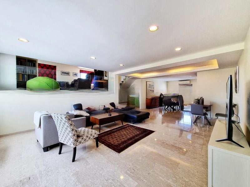This spacious 4-bedroom unit boasts standout features including a well-appointed master bedroom with a large wooden display cabinet and a dedicated vanity area. The second bedroom offers built-in glossy wardrobes and an integrated TV niche, while the versatile study/guest room is bathed in natural light, providing a perfect retreat. The dining area, seamlessly connected to the living space, showcases striking wall art and is ideal for hosting gatherings.