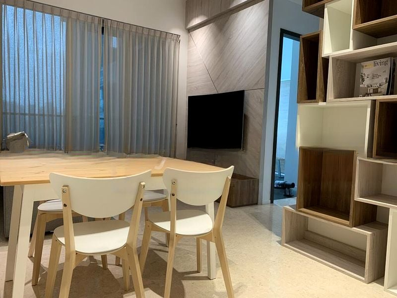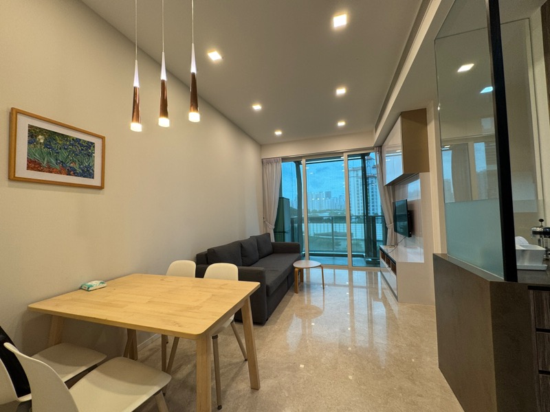 Step into a bright and airy sanctuary at Principal Garden, where abundant natural light floods through floor-to-ceiling windows, illuminating the elegant finishes throughout. The open-concept living area seamlessly connects to a private balcony, offering breathtaking views of the city skyline, creating an inviting ambiance that feels both luxurious and welcoming.