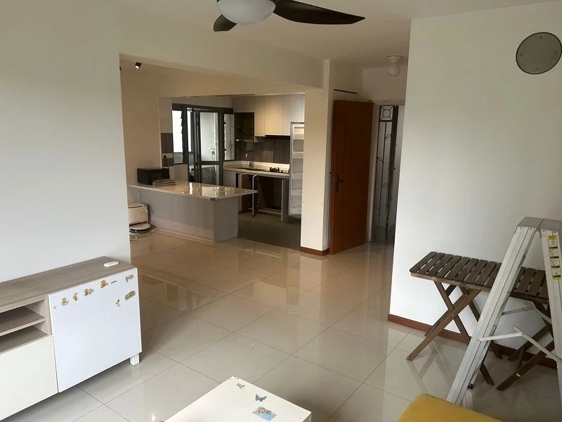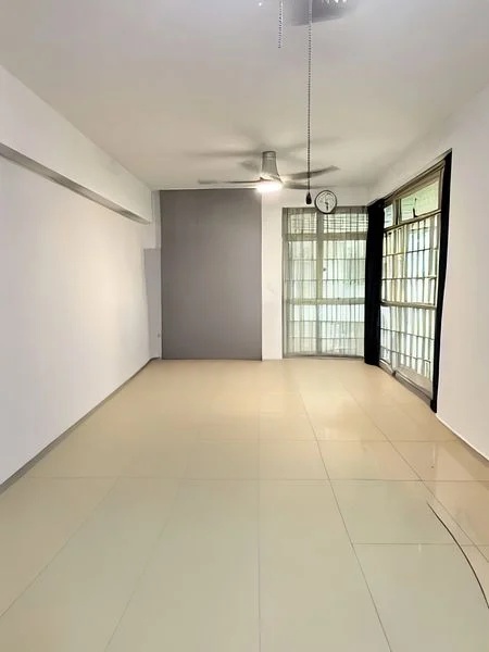 Step into a well-maintained 3-room HDB unit that exudes a practical ambiance, enhanced by moderate natural light filtering through large windows. The inviting atmosphere is complemented by ceiling fans with integrated lights, creating a cozy yet functional space. Enjoy views of neighboring blocks from the comfort of your living area, making it a perfect retreat after a long day.