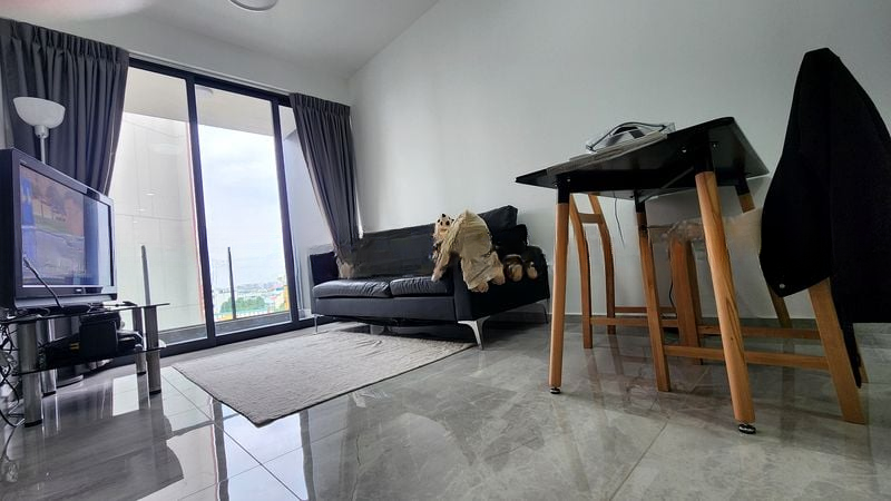 Step into this well-maintained 1-bedroom unit at Affinity at Serangoon, where modern minimalist design meets urban living. The open-plan layout invites natural light through sliding glass doors that lead to a private balcony, offering a serene view of the cityscape. The tiled flooring and clean finishes create a welcoming ambiance, perfect for relaxation or entertaining.