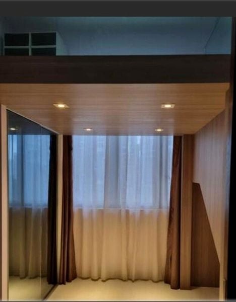 This well-maintained unit features a unique loft sleeping area, complemented by a cozy study nook tucked beneath. The kitchen boasts high-gloss white cabinetry and integrated appliances, including a microwave, oven, and induction hob, ensuring both style and functionality. The mirrored sliding wardrobe adds a touch of elegance while maximizing storage space, and the air-conditioned bedroom promises comfort with its recessed lighting and glass safety railing.