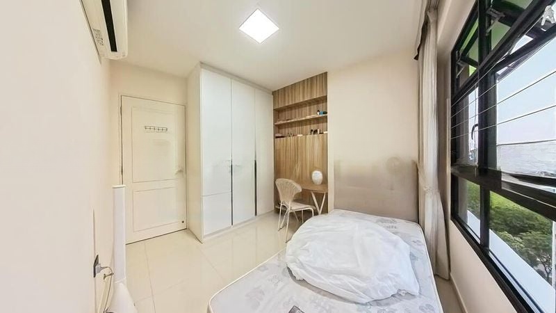 Step into this beautifully renovated HDB flat and be greeted by a harmonious blend of modern finishes and natural light. The ambiance is inviting, with a geometric feature wall in the bathroom that adds a touch of sophistication. Large windows frame views of lush greenery and the urban landscape, creating a serene backdrop for everyday living.
