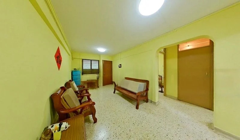 Step into this inviting flat, where classic terrazzo flooring greets you with its timeless charm. The green accent wall in the living room adds a refreshing touch, while the ample natural light creates a warm and welcoming ambiance. The functional layout ensures that every corner feels both spacious and practical, perfect for modern living.