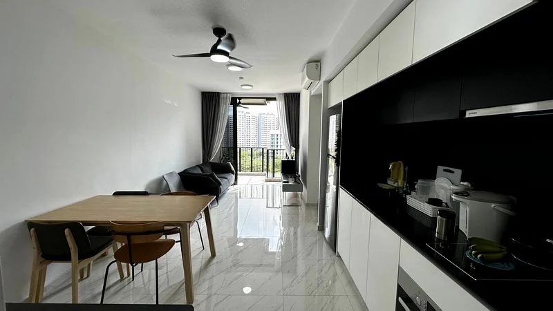 Step into a world of modern elegance as you enter this beautifully renovated unit at LE QUEST. Bathed in natural light, the open-concept living area features sleek marble-look floor tiles and seamless access to a balcony that offers unblocked panoramic views of the city skyline and lush greenery. The minimalist design creates a serene ambiance, perfect for relaxation or entertaining guests.