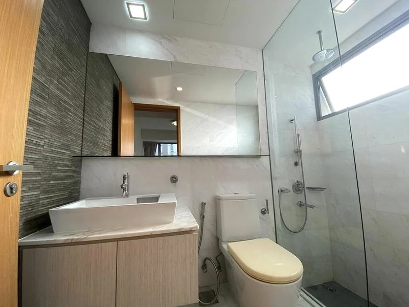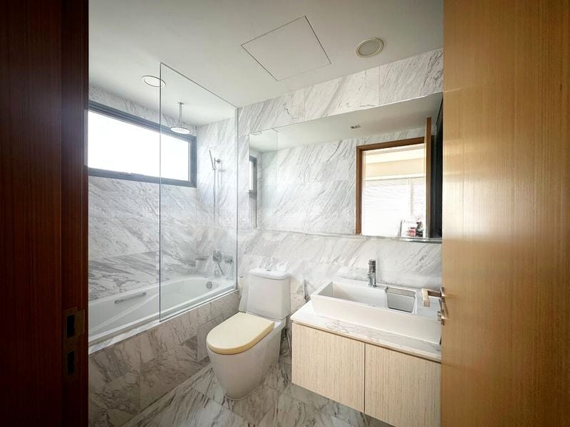 Step into a world of elegance where abundant natural light floods the open-concept living space, accentuating the bright and airy ambiance. The stunning city skyline views from the high-floor balcony create a serene backdrop, while the marble-tiled bathroom and luxurious finishes elevate the overall aesthetic.