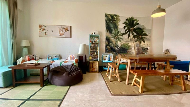 Step into this beautifully maintained 3-bedroom unit at Sunhaven, where abundant natural light floods the space, creating a bright and airy ambiance. The polished wood flooring and large windows draped with sheer curtains invite you to enjoy the serene views of surrounding greenery, while the glass-enclosed balcony offers a perfect spot to unwind.