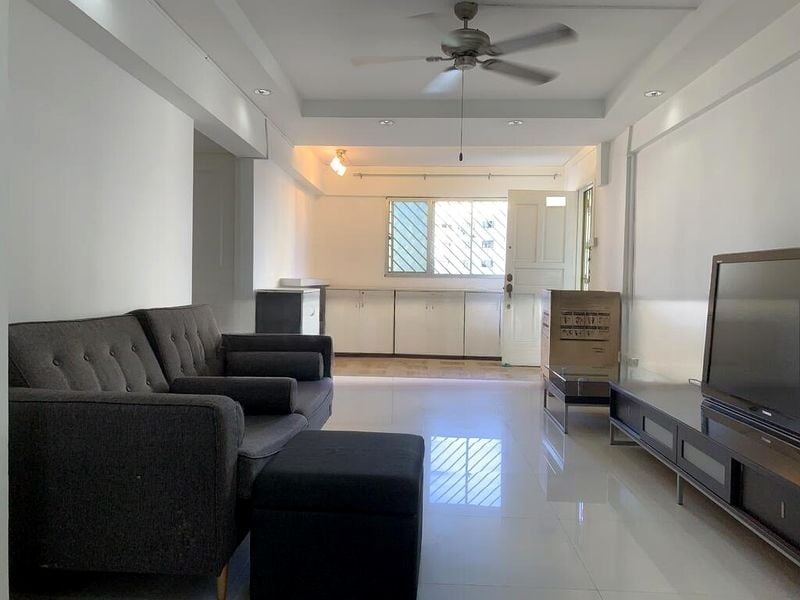 Step into a beautifully renovated HDB flat that exudes modern minimalist charm. The polished floor tiles reflect the natural light that filters through the windows, creating an inviting ambiance. With an urban view as your backdrop, the living room features recessed lighting and built-in low cabinets, making it a perfect space for relaxation and entertainment.