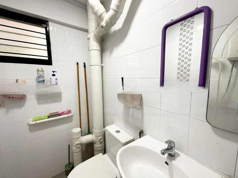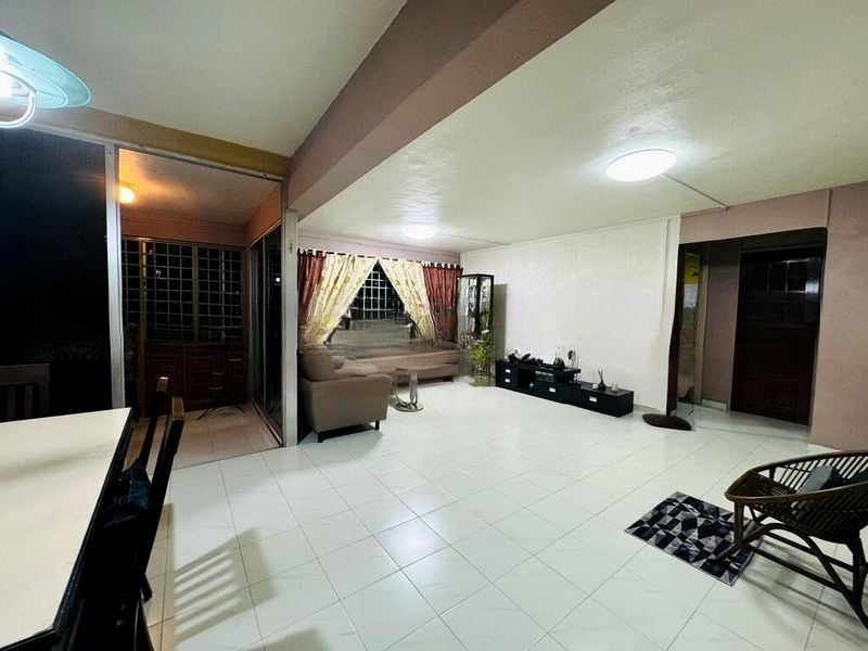 Step into this spacious 3-bedroom HDB flat and experience the functional charm of its original condition. The light beige tiled flooring and large windows invite moderate natural light, creating a warm and welcoming ambiance. Enjoy neighborhood views from the living room, where the basic yet practical design allows for easy customization to suit your personal style.