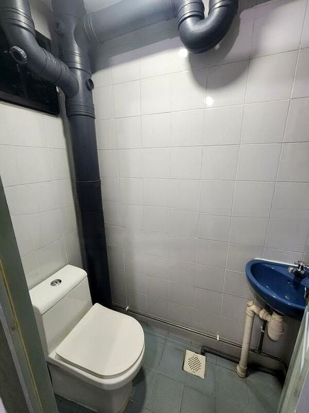 This 1-bedroom unit features a spacious bedroom with a large built-in wardrobe, providing ample storage. The kitchen is equipped with a built-in gas hob and storage cabinets, while the bathroom showcases charming pink square wall tiles. The layout is efficient, making the most of the 495 sqft floor area, while the fully-furnished setup allows for immediate occupancy.