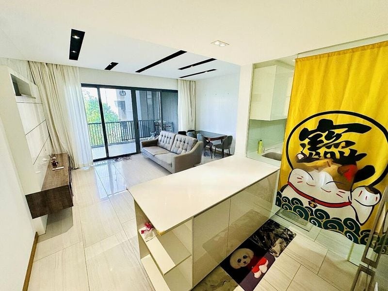 Step into this beautifully designed 3-bedroom unit at Lakeville, where modern minimalist aesthetics meet abundant natural light. The open-concept living area, adorned with recessed ceiling lighting, invites you to relax and enjoy the serene views of greenery and neighboring buildings. A seamless flow from the living room to the balcony enhances the airy ambiance, making it an ideal space for both entertaining and unwinding.