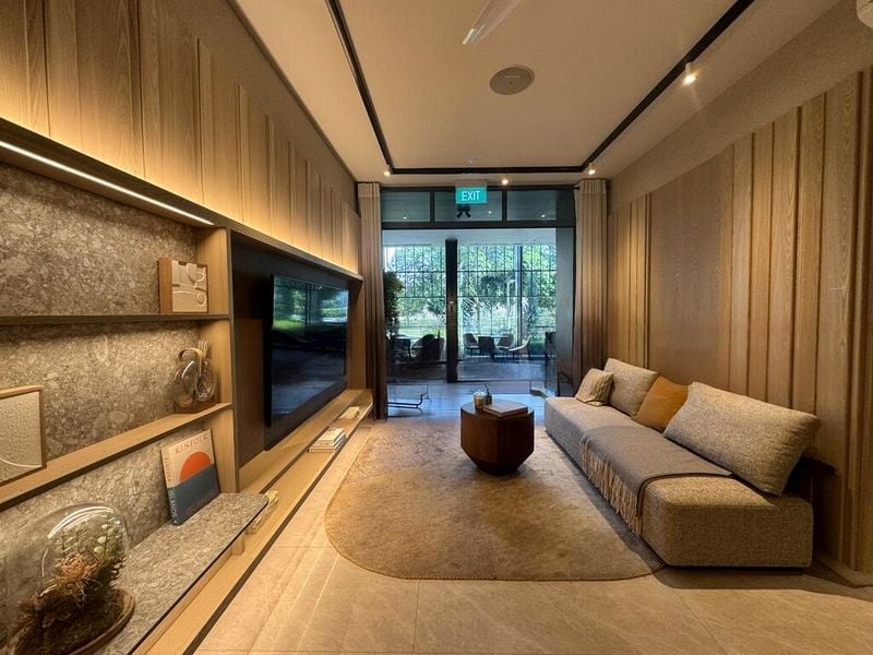 Step into a sanctuary of modern elegance at Treasure Crest, where abundant natural light floods the spacious living area, accentuating the polished floor tiles and the stunning marble-look TV feature wall. The cozy ambiance is enhanced by false ceilings with cove lighting, creating an inviting atmosphere that beckons you to relax and unwind.