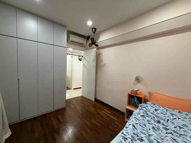 This spacious 3-bedroom unit features a dedicated utility area complete with a laundry pole, ensuring convenience in your daily routines. Each bedroom is thoughtfully equipped with ample storage, including a large built-in wardrobe in the second bedroom and a study desk in the first. The storage room with built-in shelving offers additional space for your belongings, making organization a breeze.