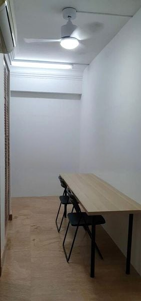 Step into a serene oasis at Changi Court, where polished stone flooring greets you in the living area, reflecting natural light that dances across the space. The ambiance is simple yet functional, enhanced by ceiling fans and a balcony that invites you to enjoy the lush greenery outside, creating a perfect backdrop for relaxation.