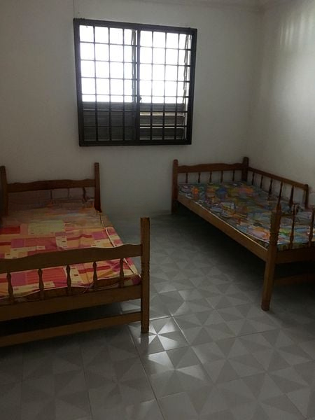 Step into a well-maintained 2-bedroom flat where simplicity meets functionality. The moderate natural light filters through the windows, illuminating the geometric tiled flooring and creating a warm ambiance. With dark wood furniture in the living room and fully-furnished spaces, you’ll feel right at home from the moment you walk in.